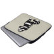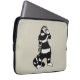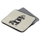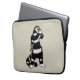 Creepy cat laptop sleeve with an ink drawing depicting a strange black and white striped kitty with long neck holding a skull mask. Seems one of his gloves is out and his skeleton hand shows from its sleeve. Gets me wondering whether it is a lot more of a creepy creature than it pretends to be on Halloween Creepy