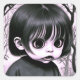 Creepy little Chibi Child with big eyes in the scary woods. Halloween stickers.