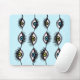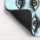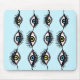 Creepy eye mousepad with a weird pattern created from a cool digital ink illustration of staring blue and green eyes with long eyelashes arranged like garlands.
