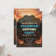 However, the true star of this invitation is the mesmerising background photo, extending to both the front and back. It captures a captivating and eerie scene of distant, illuminated houses against a twilight sky. In the foreground, a sprawling field of jack-o'-lanterns adds an element of spooky charm. As the sun sets, this invitation immerses your guests in a captivating and mysterious atmosphere, ensuring an unforgettable Halloween experience.