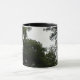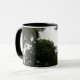 This beautiful mug features a photograph taken from within a dense forest. The photograph shows the darkness of the trees and a small area of grey sky. The result is an eerie and atmospheric scene. The design is shown on a black and white ringer style coffee mug, but is also available on several other styles and colours of mugs.