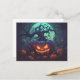 Imagine a moonlit night filled with whispers of the unknown – our postcard transports you to this mystical scene. The centred creepy jack-o' lantern casts its eerie glow, casting unsettling shadows across the forest and inviting you to explore the secrets that lie within.