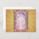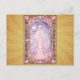The background of the postcard features a beautiful gold design, adding a touch of elegance and sophistication to the overall aesthetic. The golden backdrop provides a rich contrast to the vibrant pink and blue hues, highlighting the intricate details and enhancing the postcard's visual appeal. This harmonious blend of colours and themes evokes a sense of otherworldly charm, making the postcard a true work of art.