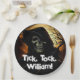 The grim reaper with his skeletal face and an ominous background makes up this scary design that says, "Tick, tock, name."