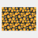 Spooky collection of three creepy pattern wrapping paper sheets featuring spider web, jack o lantern, spider, pumpkin and ghost.