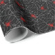 Creepy spider web gift wrap with red spiders on a black background. Perfect for Halloween decorating and spooky gifts this October!