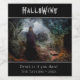 "Welcome to my cursed home, enter if you dare!" Macabre, gothic horror illustration of a creepy spirit in a dark forest with a gargoyle, strange mushrooms and ravens.