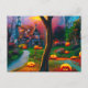 Imagine a vibrant Halloween celebration – our postcard transports you to this lively scene. The quirky house and its lively lawn create an atmosphere of both spooky charm and excitement.