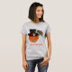 Creepy looking pumpkin head wearing a top hat with a skull Halloween T shirt. Replace your text in the template, or be sure to delete for no text. Available in assorted sizes, styles, and colours for men, women, and kids. Visit Smilin' Eyes Treasures to see more Halloween cards and gifts.