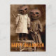 Creepy sepia vintage look photograph of two pumpkin head kids with customisable text. Perfect for sending Halloween time greetings!