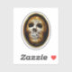 * Discoloured creepy skull design within a black oval ..... mini stickers for scrap books.