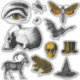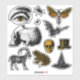 A creepy set of Halloween-themed stickers, featuring an eye, moth, bat, witches hat, goat flies, frogs and skulls. You can choose between matte white or glossy transparent vinyl; please note that white ink is not printed on either substrate. The sticker's removable, low-tack adhesive leaves no sticky residue, they are printed with solvent inks that are fade-proof, water-proof and scratch-resistant, making them compatible with and ideal for decorating water bottles, helmets, cars, skateboards, bikes, laptops, phones, tablets, binders, notebooks, journals, lockers, water bottles and more! They are available in 6 different sizes, there is a 0.125" border around each sticker to help it stand out against any background! © Julie McIver