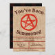 A halloween invitation on old yellowed vintage paper. A huge red pentagram is in the centre. The words "You've Been Summoned" are above and below the spooky symbol. The pentagram was painted with MY BLOOD! Just kidding, it was traditional watercolor paint on paper hehe. Scanned and edited to be what you now see. Overall it was meant to look like a mysterious note you might see in a horror movie. Below all that is all the details for your Halloween party! Be sure to customise it to fit your own scary needs before purchasing!