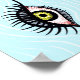 Creepy eye poster with a weird pattern created from a cool digital ink illustration of staring blue and green eyes with long eyelashes arranged like garlands.