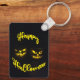Creepy yellow glow pumpkin face Happy Halloween Key Ring