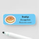This badge looks professional and it's in keeping with my branding. The magnetic attachment is strong and stays in place all day. The quality of the materials and the colors were exactly as pictured. I couldn't be happier! The printing is clear and easy to read