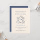 the design shows a classic elegant wedding invitation in dusty blue calligraphy and typography and a floral crest at the middle with couple name initials within it. This design is extremely classy and will be unique,classic choice for your wedding.