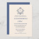 the design shows a wedding invitation written in classic dusty blue calligraphy and typography along with a floral crest at the top. this design is absolutely unique,classic,elegant,modern and will be perfect for your wedding.