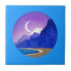 Crescent Moon, Lake and Mountains in Violet & Blue Ceramic Tile