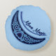 Crescent Moon Magic Stars Celestial Light Blue Round Cushion