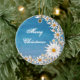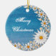 Christmas Ornament - Blue night sky crescent moon in daisies with silver lining