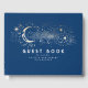 Starry night and crescent moon night scene navy blue and gold wedding guest book