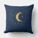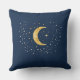 Introducing our exquisite Crescent Moon Starry Night throw pillow, a celestial marvel that will transport you to a dreamy starlit sky. Crafted in a captivating dark navy blue shade reminiscent of the night sky, this throw pillow is adorned with a mesmerising gold crescent moon at its centre, surrounded by a celestial constellation of gold and light silver stars.