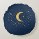 Introducing our exquisite Crescent Moon Starry Night throw pillow, a celestial marvel that will transport you to a dreamy starlit sky. Crafted in a captivating dark navy blue shade reminiscent of the night sky, this throw pillow is adorned with a mesmerising gold crescent moon at its centre, surrounded by a celestial constellation of gold and light silver stars.