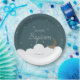 This cute baptism paper plate features faux gold glitter stars and the crescent moon on a navy blue background. Change the background colour and personalise it for your needs. You can find matching products at my store.