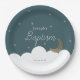 Crescent Moon & Stars Navy Blue Baptism Paper Paper Plate