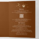 This enchanting terracotta tri-fold wedding invitation beautifully merges your cherished photographs with an extraordinary cosmic and mystical design, ideal for themes like "Under the Stars," "To the Moon and Back," or "Written in the Stars." The tri-fold card elegantly consolidates your wedding invite, details - information, and RSVP into one sophisticated ensemble. Additionally, you can add a QR code - simply substitute the existing URL with one of your choosing. The design is adorned with exquisite illustrations of a golden crescent moon, a glowing sun halo, assorted planets, constellations, and galaxies, capturing the mesmerising essence of a star-filled night sky. You have the flexibility to feature a single photo on both sides or to select two different photographs to add more variety.