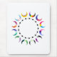 Add a bold touch of identity to your workspace with this mousepad featuring a vibrant circle of crescent moons in pride flag colours, encircling a striking line of black hearts.