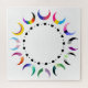 Set the tone for a gathering full of love, colour, and quiet rebellion with this square white jigsaw puzzle featuring a circle of crescent moons in pride flag colours, surrounding a ring of black hearts. Perfect for pride parties, time with friends, or any get together that centres chosen family.