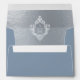 Crest Dusty Blue Wedding Monogram Faux Silver Foil Envelope