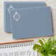 An elegant envelope with a monogram initial in a vintage crest on all sides. It is dusty blue outside and faux silver foil inside. The vintage crest is also faux silver foil. The return address is printed on the flap, with the monogram in crest on its left. The monogram has the 2 initials of the bride and groom separated by a line.