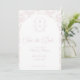 Blush Pink Monogram Crest Wedding Save The Date: Vintage-inspired line art monogram crest with elegant pale pink typography. Features a chinoiserie floral pattern in the shape of an arch and on the reverse for timeless sophistication. Elegant script font for a formal and classic style.