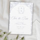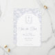 Dusty Blue Monogram Crest Wedding Save The Date: Vintage-inspired line art monogram crest with elegant dusty pale blue typography. Features a chinoiserie floral pattern in the shape of an arch and on the reverse for timeless sophistication. Elegant script font for a formal and classic style.
