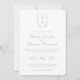Elegant Dusty Blue Monogram Crest Wedding Invitation: Vintage-inspired line art monogram crest with traditional dusty blue typography. Features a chinoiserie floral pattern on the reverse for timeless sophistication.