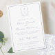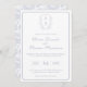 Dusty Blue Monogram Crest Wedding Invitation: Vintage-inspired line art monogram crest with elegant dusty blue typography. Features a chinoiserie floral pattern on the reverse for timeless sophistication.