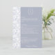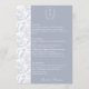 Dusty Blue Monogram Crest Wedding Menu Card: Vintage-inspired line art monogram crest with elegant typography. Features a chinoiserie floral pattern on the reverse and on the side for timeless sophistication. Enter the design tool option if adjustments are needed when your menu text is added.