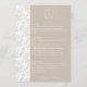 Pale Taupe Monogram Crest Wedding Menu Card: Vintage-inspired line art monogram crest with elegant typography. Features a chinoiserie floral pattern on the reverse and on the side for timeless sophistication. Enter the design tool option if adjustments are needed when your menu text is added.