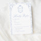 Soft Delft blue floral RSVP response card, designed in a refined blend of chinoiserie and French toile de Jouy style. The soft botanical illustrations frame an arched layout featuring an elegant wedding crest monogram, perfect for couples who love vintage, historic, and European-inspired aesthetics. Classic script typography pairs beautifully with the ceramic-blue palette, making this design an effortless nod to the tradition of “something blue.” Fully customizable with your RSVP date, guest name and menu choice, it’s an exquisite choice for any romantic or sophisticated wedding theme.