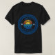 Crete, Greece summer sunshine and sea design men's black T-shirt. This design features a Greek pattern style circle with a graphic of sunshine and sea with the words "Crete" and "Greece" in curved text and the national flag of Greece as part of the design. This summer design is great if you are planning a trip to this beautiful Greek island or to give as a gift to someone who will enjoy it.