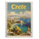 A vibrant and nostalgic depiction of Crete, Greece's largest island, celebrated for its diverse landscapes and rich cultural heritage. The design features the island's dramatic coastline, with crystal-clear waters and golden beaches, ancient ruins like the Palace of Knossos, and charming villages such as Chania and Rethymnon. Rendered in a vintage style, the artwork captures the island's timeless beauty and inviting atmosphere, inviting viewers to explore its historical sites and natural splendour