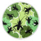 This whimsical design features a pattern of black crickets set against abstract green flowers. In some cultures, these insects are thought to bring good luck.