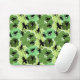 This fun mouse pad is embellished with a pattern of black crickets set against abstract green flowers. In some cultures, these insects are thought to bring good luck.