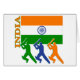 Three silhouetted Indian Cricket Players under the Indian Flag with the country name India along the side.
