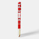 Cricket balls create a bright polka dot pattern on a white background on this sporty phone case. Cricket bats are also used in a complementary pattern. A red band across the case has space to add a name or other text to personalise.