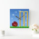 Cricket, wicket and ball square wall clock