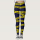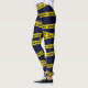 Colourful dark blue leggings patterned with yellow crime scene tape.